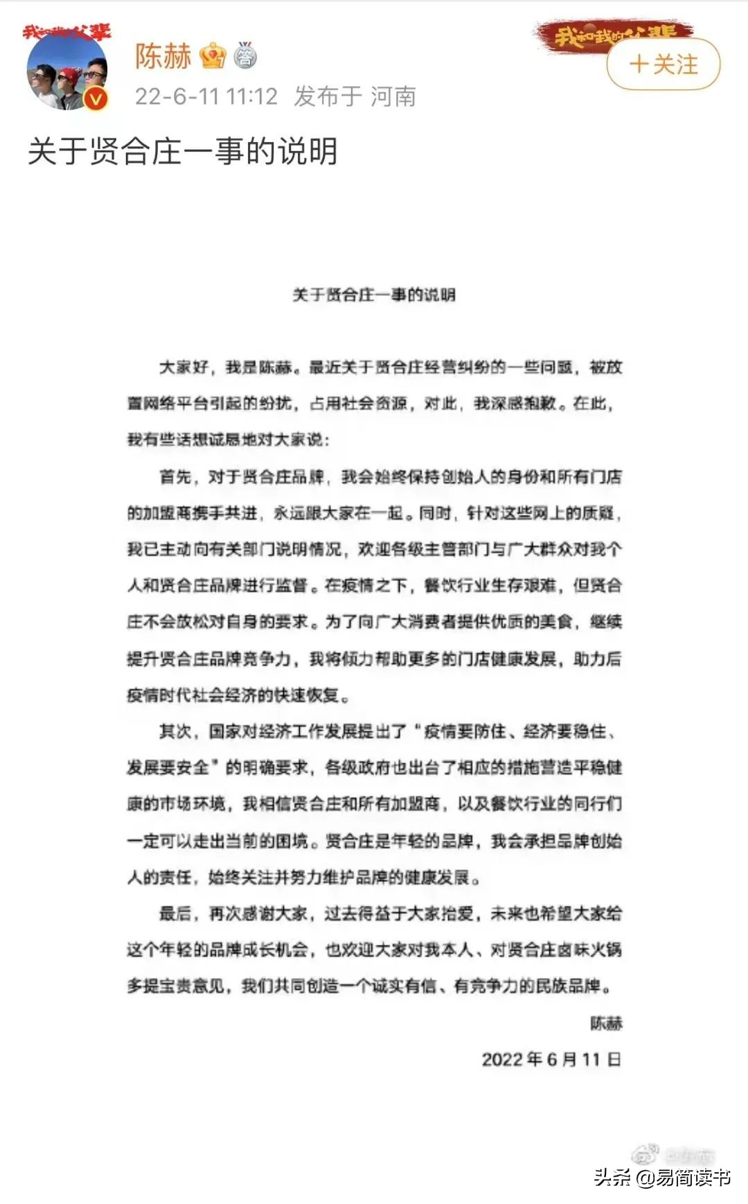 就在前天,他本人才终于发声,回应了贤合庄经营纠纷。