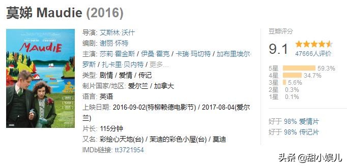 爱尔兰导演艾斯林·沃什用其女性特有的感性和细腻向我们展现了莫娣传奇的一生。作为一部人物传记片,《莫娣》因其丰满的人物形象和自然纯净的情感俘获了众多影迷的心。豆瓣评分9.1分充分证明了这部佳作的高品质。