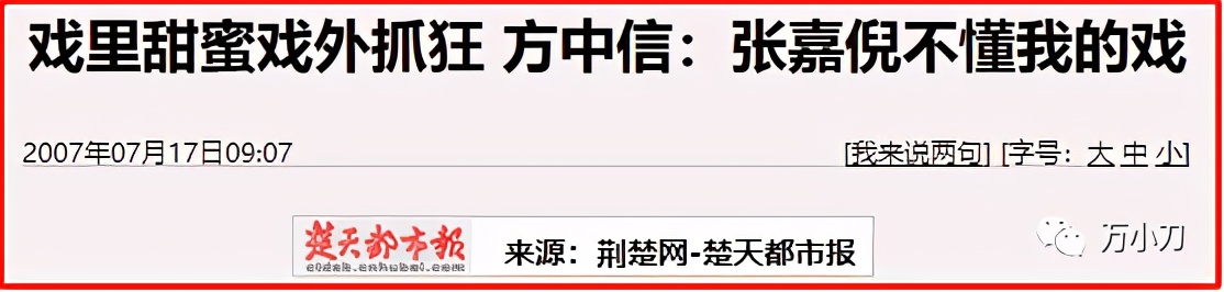 他与饰演“紫菱”的张嘉倪,在剧中爱得死去活来。可在实际拍摄中,方中信却常被她气得抓狂。