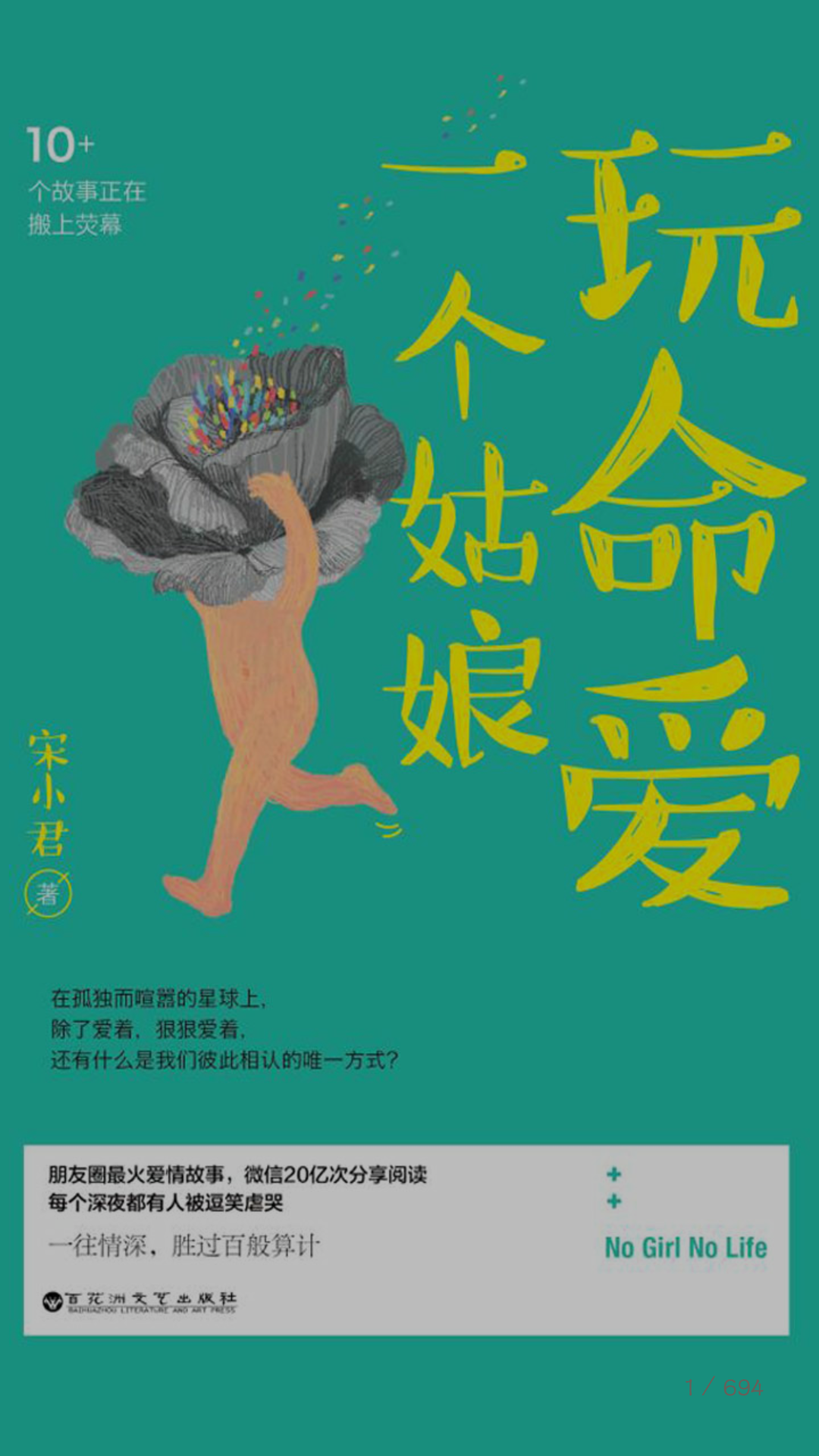 是很偶然的机会看到这本书。也是被书商“夸张”简介吸引来的。以下本书简介《玩命爱一个姑娘》发布在网上后,短短两三天阅读量破亿,百度搜索量达千万次,引发网友和媒体的激烈讨论,刷爆朋友圈,累积至今微信过20亿次阅读。有没有觉得哇,这么火我得看看。