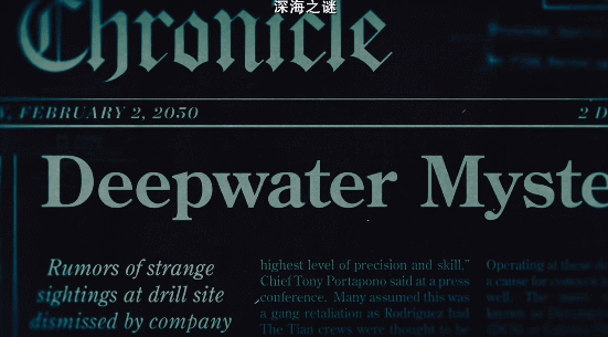 影片采用剪报式的片头概述前因后果,并使用暗蓝色调和阴沉险恶的配乐营造气氛:“工人失踪”、“深海物种”、“不明爆炸”等字眼,都在加重影片的神秘感。