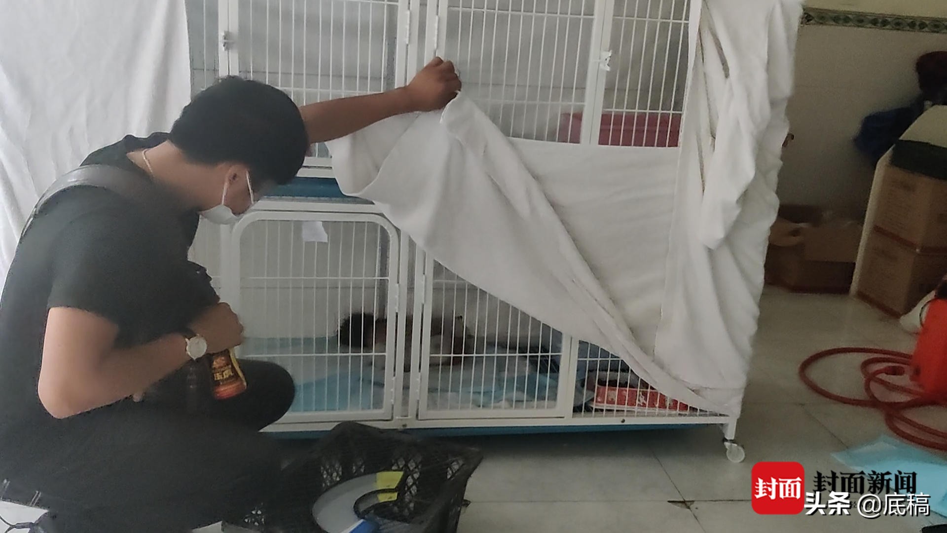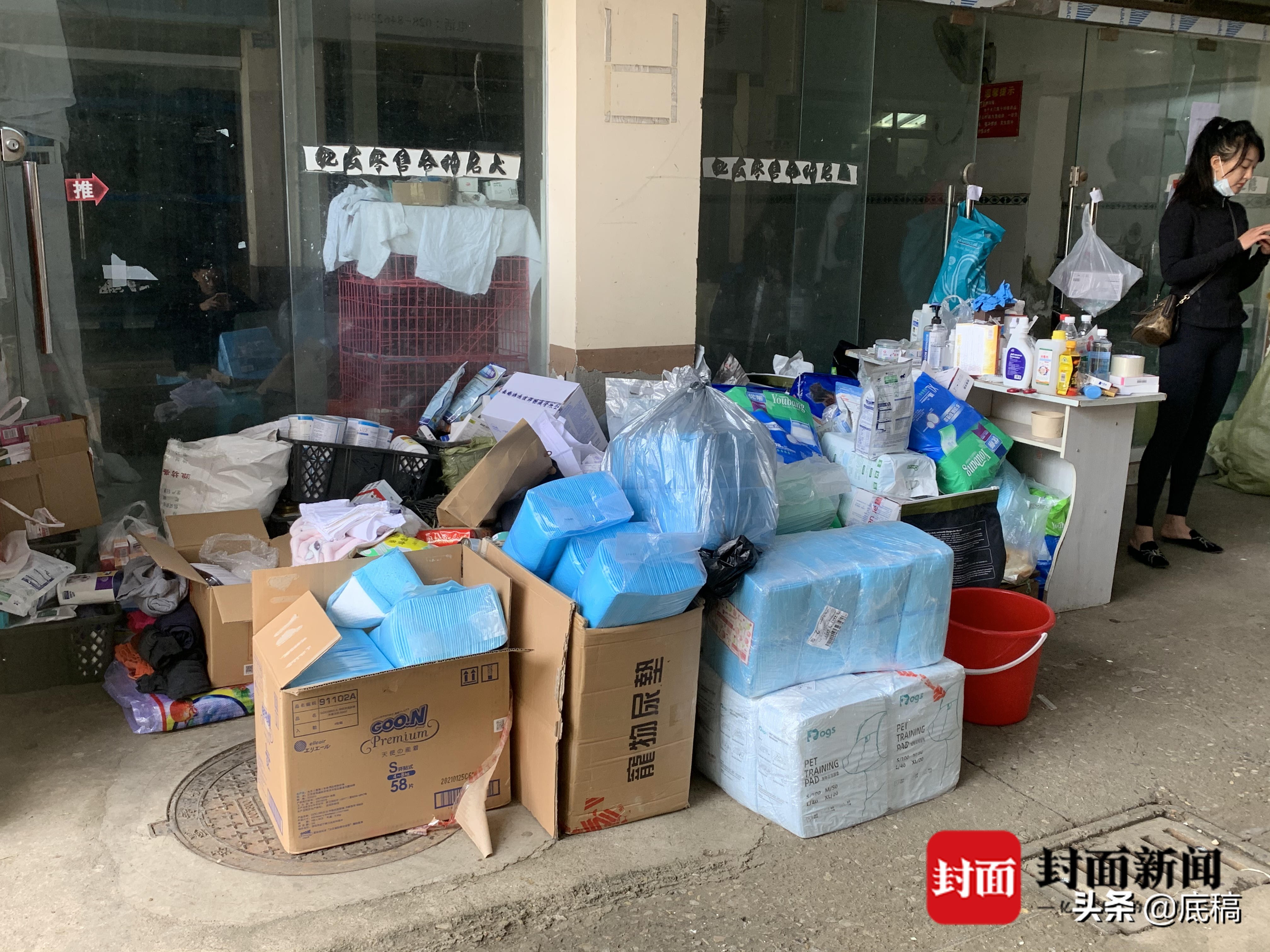 他们之中,有的正对环境进行消毒,有的正检查协调物资,有的正协助医生逐一检查动物相关情况。一名爱心人士介绍,在社会各界的救助下,目前大部分物资已经够用。
