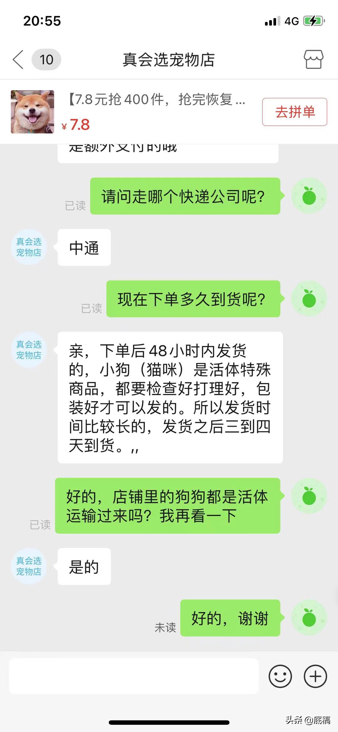 截至5号中午,记者仍然发现有网络平台仍在以低价售卖“宠物活体”。名为“真会选宠物店”的客服称:“由江苏发货,走中通快递。下单全款138元,包含疫苗、运费、运输箱。”