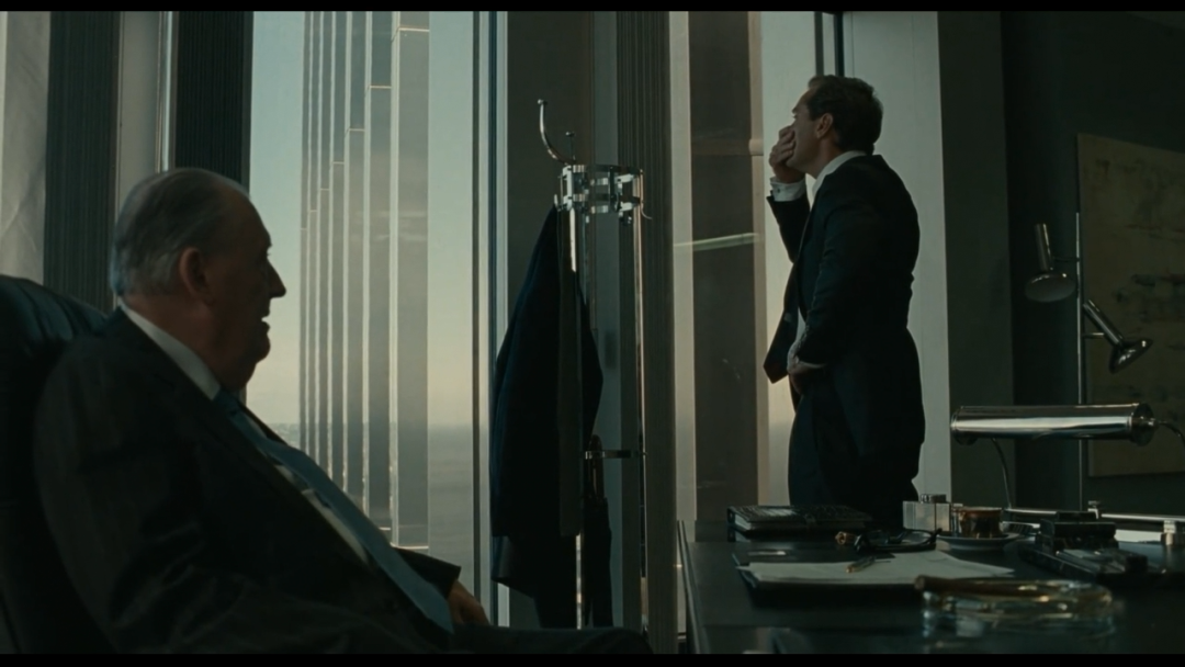 《秘密窝点》中,罗伊这个表面上夸夸其谈、偏执的相信一定能成功的男主,了裘德·洛的很大的演技发挥空间,当男主西装革履的自信外表被撕得粉碎,歇斯底里般的怒吼与愤怒,让观众看到和感受到了一种真切的可怜与可悲。