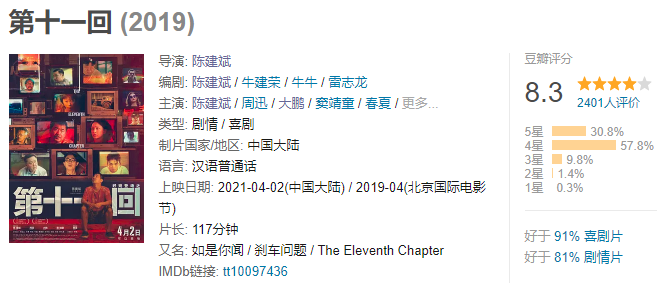 新作也是刷屏电影节,豆瓣开分8.4,有爆款趋向。