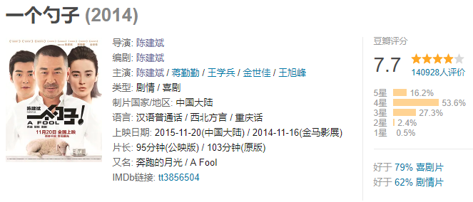 电影处女作就拿下了7.7的高分,寓言性的荒诞故事,后劲极大。