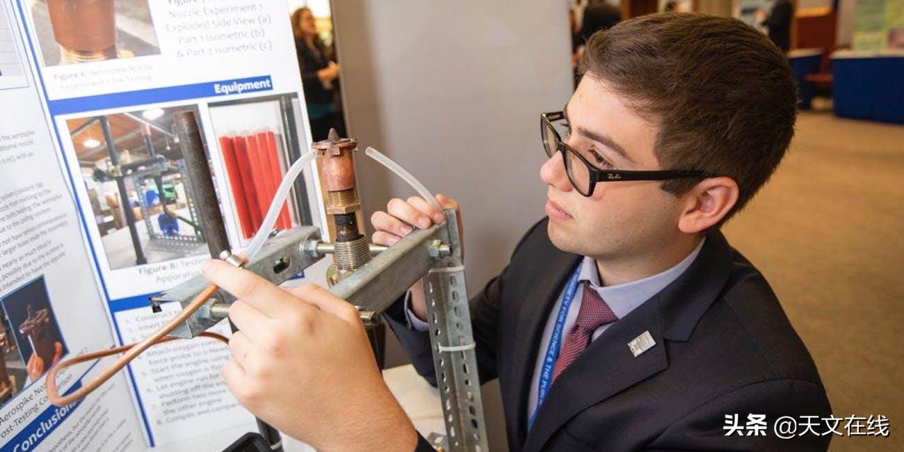 他的一个项目,“喷气式飞机喷嘴对混合火箭发动机的影响”,为他赢得了一张去华盛顿特区的机票,他成为regeneron搜寻科学人才比赛的前40名竞争者之一,这是该国最古老的高中毕业生科学和数学竞赛。