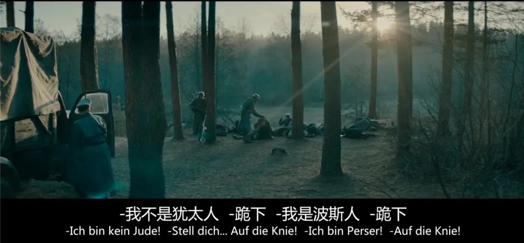 下一秒,车里的犹太人就被带到一个树林中,被几个德国士兵开枪打死了。